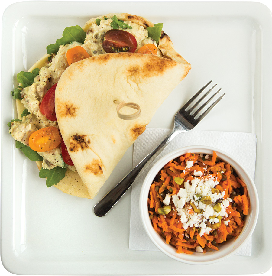 Everything on the menu here sounds pretty basic: tuna salad and carrot salad. But the flavors are anything but. There was a ton of taste packed into that folded homemade naan. The bread itself was delightful, soft and chewy but sturdy enough to hold the filling that threatened to burst out. The tuna salad inside was nothing like that mayo-and-relish stuff you make at home. It featured sweet Turkish apricots, crispy cucumber, crunchy walnuts, spicy arugula and some of the freshest little sweet tomatoes I’ve ever had in the dead of winter.