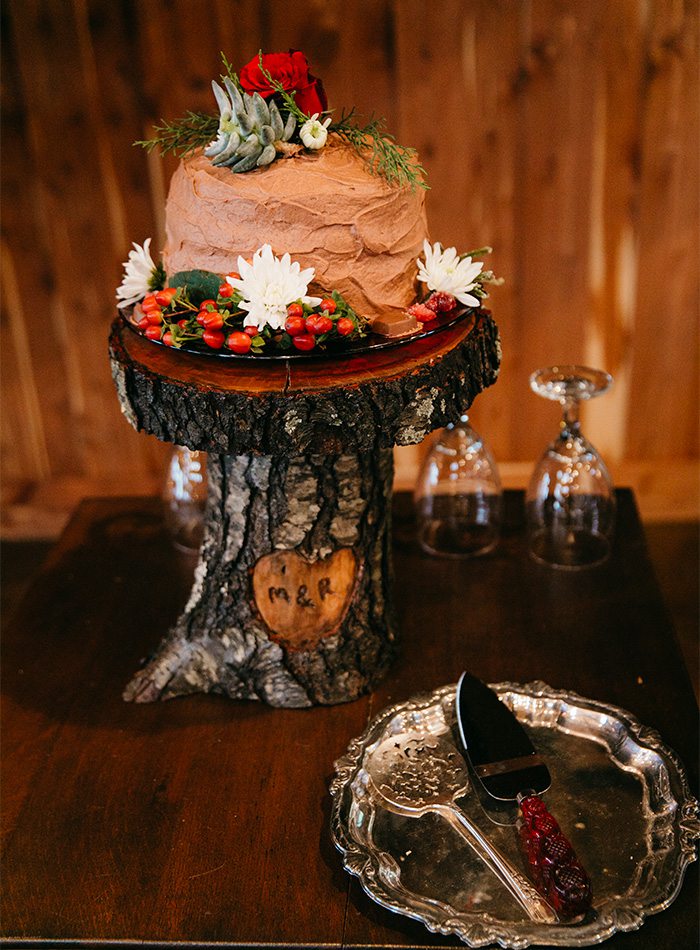 The groom’s cake featured Rachel and Matt’s initials carved into the trunk of the cake stand.